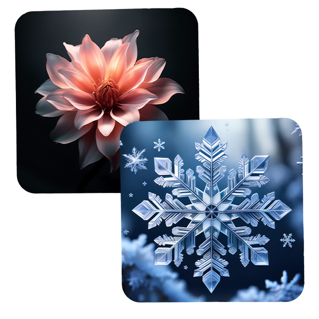 Valitse jokaiseen lasinaluseen vaikka eri kuva tai personoi firman logolla.