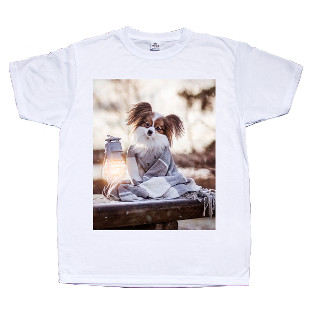 Paitaan voi laittaa puhelimella tai järjestelmäkameralla otetun kuvan. Vanha paperinen valokuva myös käy painettavaksi paitaan.
